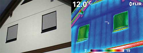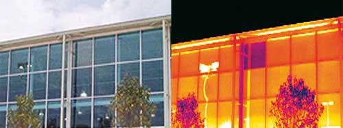 De infrarood inspectie ontdekt een verkeerd gebouwd glaselement. De coating is aangebracht aan de binnenzijde in plaats van de buitenkant van het raam.