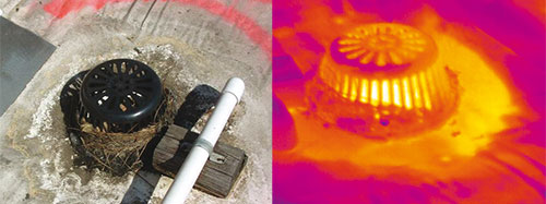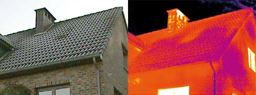 Dankzij de infraroodinspectie kan de ontbrekende isolatie op het dak ontdekt worden.