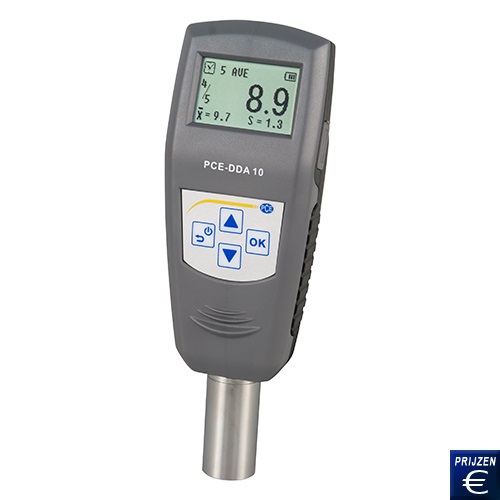 De Rubberen Hardheidsmeter PCE-DDA (Shore A) wordt zowel als mobiele meter ter plaatse gebruikt of voor materiaalmeting in het laboratorium. De Rubberen Hardheidsmeter bestaat uit een meeteenheid met sensor en een digitaal beeldscherm met een afleesnauwkeurigheid van 0,1 eenheden hardheid.