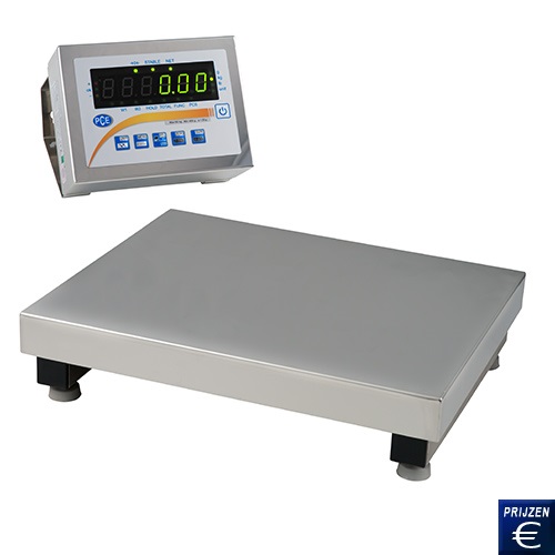 Waterdichte roestvrijstalen weegschaal met een gewicht tot 300 kg / volledig roestvrijstaal / Beschermingsklasse IP67 - IP65 / opsomfunctie / Limiet functie / statistieken functie /