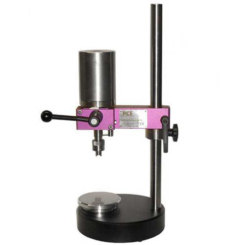 shore testbank voor standaard durometers van de serie PCE (Shore A, D en O), robuust aluminium ontwerp, DIN 53505, ISO 868, ISO 7619, ASTM D 2240, maximale dikte van het testmateriaal 180 mm